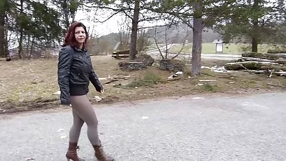 Vacker brunett på bilen knullar med sin älskare i frisk luft utanför staden 15634